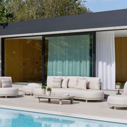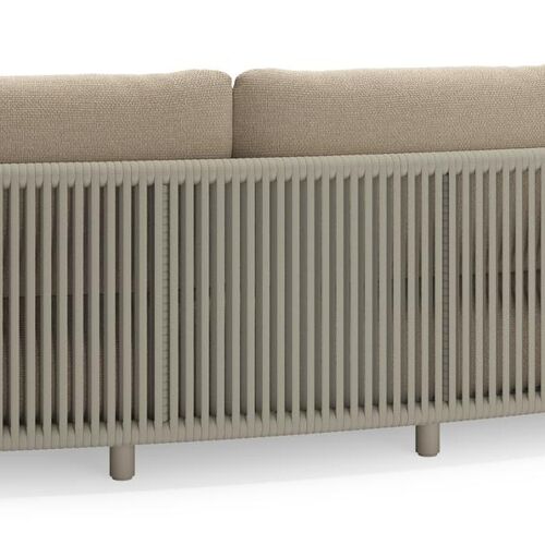 Canapé de jardin Lomano en aluminium beige et corde luxe plate tissée verticalement beige et coussins en all weather cosytica Althea Chalk | Exterioo