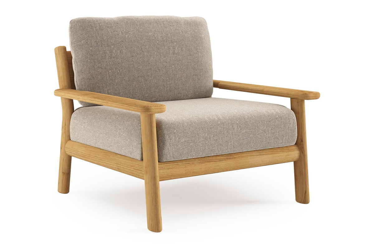 Amaro loungestoel in teak met chartres pewter all weather sunbrella® luxe kussen | Exterioo