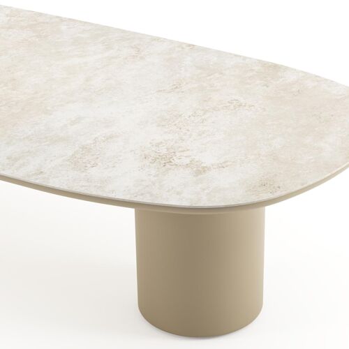 Amico low dining tuintafel bombo in beige aluminium en volkeramiek Rapolano - L 320 x B 130 x H 61 cm | Exterioo