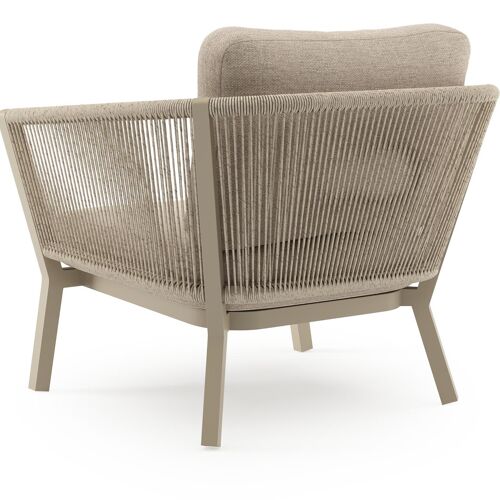 Cordoba loungestoel in beige aluminium en beige verticaal geweven ronde rope met rustic weather+ softtouch kussen | Exterioo