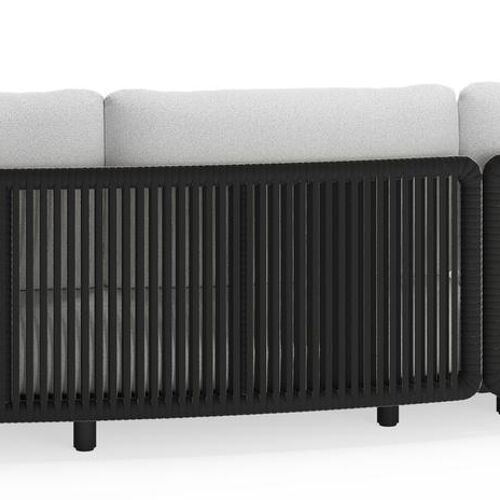 Lomano loungebank in zwart aluminium en beige verticaal geweven luxe vlakke rope met ego birch all weather solica kussen | Exterioo