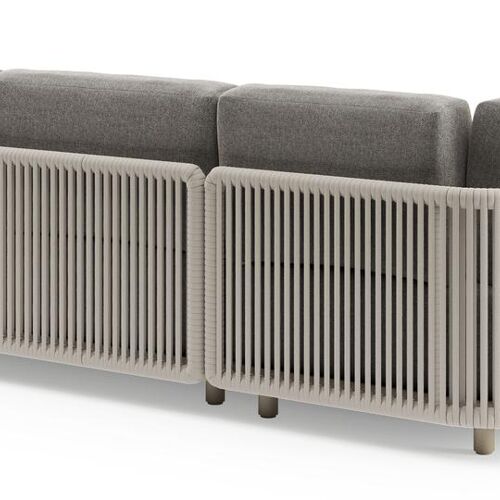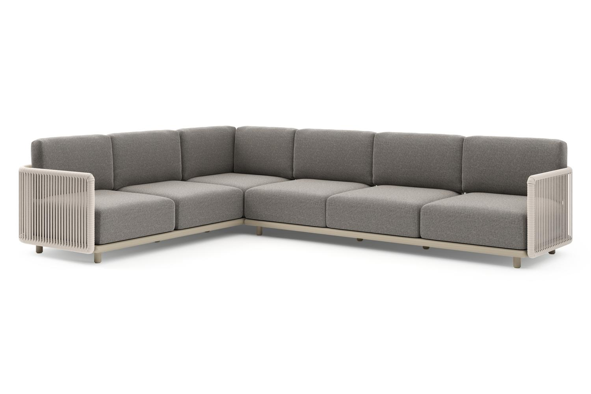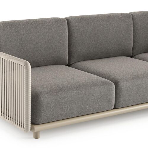 Organo loungehoek in beige aluminium en beige verticaal geweven luxe vlakke rope met chartres drizzle all weather Sunbrella® luxe kussen | Exterioo
