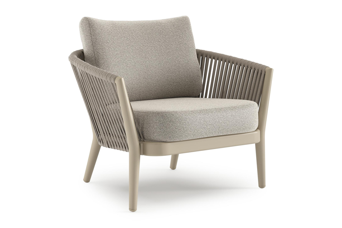 Orso loungestoel in beige aluminium en beige verticaal geweven ronde rope met Firenze Sand all weather solica kussen | Exterioo