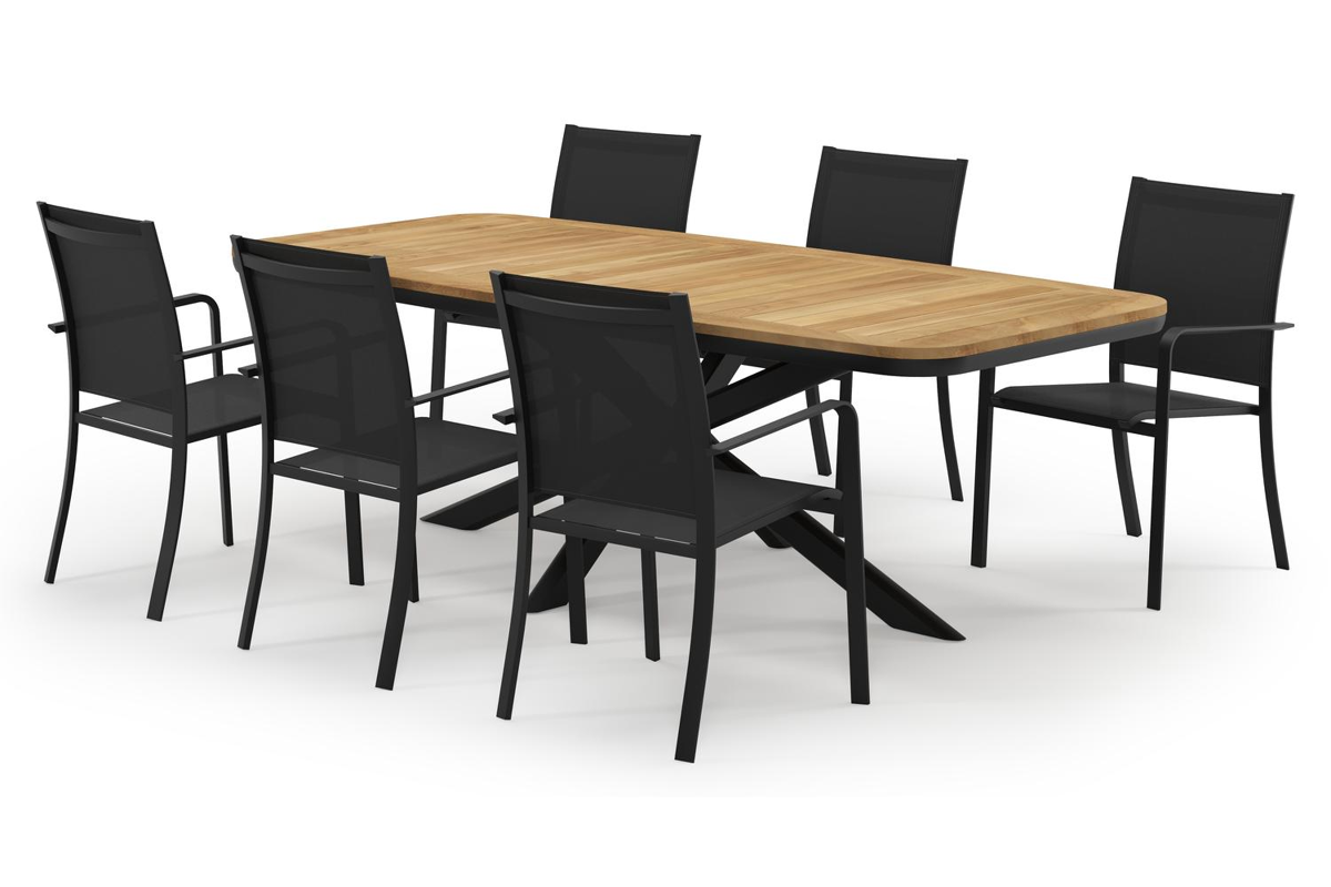 De Pamplona tuinset straalt met zijn afgeronde vorm en opvallende kruispoot een robuuste hedendaagse look uit. Deze tuinset is ideaal voor een groot gezelschap.