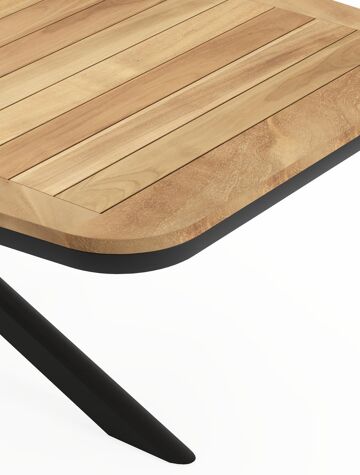 Een tafelblad uit teak staat gelijk aan bijzondere kwaliteit en natuurlijk design. Teak is een kwalitatieve houtsoort gekenmerkt door zijn hardheid. Aangezien hout leeft, kan de structuur of kleur licht anders zijn dan op het beeld weergegeven.