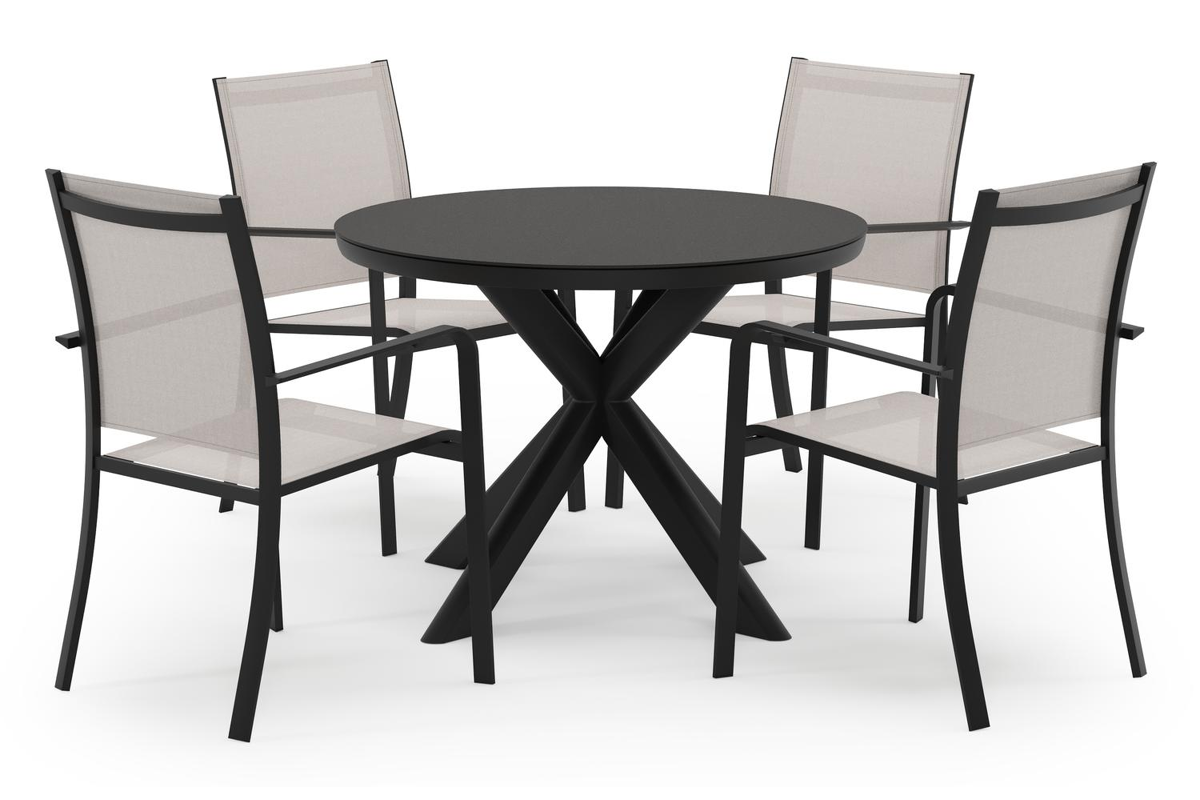 De Pamplona tuinset straalt met zijn afgeronde vorm en opvallende kruispoot een robuuste hedendaagse look uit. Deze tuinset is ideaal voor een groot gezelschap.